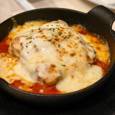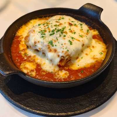 พาสต้าจานอบที่นำ แผ่นพาสต้าสดมาเรียงสลับชั้นกับซอสโบลองเนสหมู เบคอน ชีส และซอสโพโมโดโร่ โรยหน้าด้วยชีสแล้วนำ ไปอบจนด้านบนหอมเกรียม