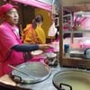 โจ๊กรสชาติดี ราคาย่อมเยา ที่ตลาดผาสุกเมืองกาญจนบุรี มองหารถสีสันสดใสให้เจอ ร้านนั้นเลยครับ