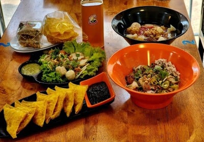 17% ของรีวิวบอกว่าร้านนี้เหมาะกับ หิวโซที่เด็ดทุ่งครุ ขาหมูอย่างเด็ด อยากแนะนำ เพราะผมชอบขาหมูรสชาติแบบนี้มาก ร้านตั้งอยู่ปากซอยประชาอุทิศ 91 ทุ่งครุ เห็นชัดอยู่ ถ้าชอบขาหมู หรือลูกชิ้นปลา เข้าไปเลยครับ • เมนูอาหารเยอะ ก๋วยเตี๋ยว ข้าว อาหารญี่ปุ่นพวกข้างหน้าไก่เทนิยากิ ก็มีให้เลือกนิดหน่อย • ของกินเล่นอร่อย อย่างเกี๊ยวหมูทอด ตัวเบ้ง ไส้แน่น 40 บาท ถูกมาก • ก๋วยเตี๋ยวดี ซุปอร่อย ลูกชิ้นดีมาก ทั้งน้ำใส ต้มยำ โฟ อร่อยทุกชาม ...อ่านต่อ