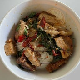 กะเพราขุนช้าง สาย1 ร้านเปิดใหม่ได้ไม่นาน เมนูแนะนำจะเป็นเมนูผัดกะเพราต่างๆ เราสั่งผัดกะเพราหมูกรอบ ทางร้านใช้กะเพราแดงผสมกะเพราใบเขียว กลิ่นหอมกะเพรามาก สั่งเผ็ดปกติ ส่วนตัวรสชาติก็จัดจ้าน เผ็ดร้อนใช้ได้เลยครับ หมูกรอบ หนังฟูกรอบดี เนื้อหมูจะนุ่มชุ่มฉ่ำ ปริมาณหมูก็น้อยกว่าข้าวสวย ข้าวราดหมูทอดกระเทียมพริกไทย เราไม่ชอบเปลือกกระเทียม มันติดคออ่ะ เปลือกกระเทียมเยอะไปนิด ปริมาณเนื้อหมูน้อยไม่พอ...อ่านต่อ