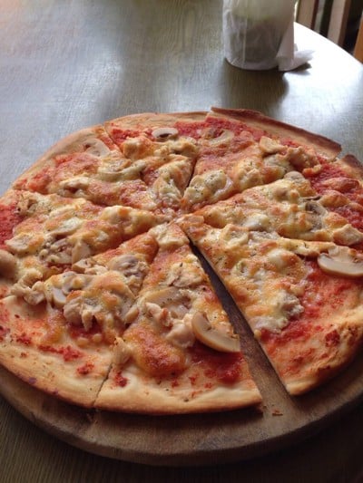 อาหารเช้า+เที่ยงก่อนออกจากเกาะ เบื่ออาหารทะเลแล้วเลยมาจบลงที่ร้านนี้ พิซซ่าเป็นแป้งบางกรอบสั่งหน้าไก่และเห็ด เพิ่มชีสเยิ้มๆ ร้านใส่ใจลูกค้า มาทาน 4 คน ร้านเลยแบ่งเป็น 8 ชิ้นให้ ปกติจะได้ถาดละ 6 ชิ้น ร้านพิซซ่าติดกับร้านกาแฟเลย สามารถสั่งมาทานในร้านได้เลยค่ะ ลองเปลี่ยนบรรยากาศมาทานพิซซ่าที่เกาะล้านกันดูนะคะดูเพิ่มเติม