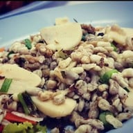 ร้านที่คนท้องถิ่นแนะนำ ไม่ไกลจากที่พัก ขับตาม map มีที่จอดรถของร้านสะดวก ร้านกว้างค่ะ เสริฟ์อาหารออกเร็ว อาหารจะเป็นเหมือนร้านข้าวต้ม ยำ ต้ม ตามสั่ง เมนูค่อนข้างเยอะเลย เมนูพระเอกของมื้อนี้คือ หมูสามชั้นคั่วเค็ม 80฿ ทอดแบบชุปแป้งนิดๆรสชาติเค็มๆกรอบๆอร่อยดีค่ะ ปลากระพงทอดน้ำปลา 380฿ ทอดใหม่ๆร้อนๆ เสริฟ์คู่กับน้ำจิ้มซีฟู้ด ใช้ได้นะคะ สดแต่อยากให้ทอดเกรียมกว่านี้หน่อย และปลาไม่เค็ม ไม่แน่ใจว่าล...อ่านต่อ