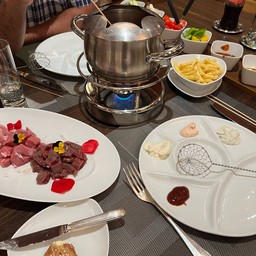 100% ของรีวิวบอกว่าร้านนี้เหมาะกับ เพื่อนฝูงมื้อค่ำในโรงแรม Belevedere กับร้านบรรยากาศ classic มีที่นั่งริมหน้าต่างเห็นวิว Grindelwald หรือที่นั่งด้านในมี piano เล่นสดเข้ากับบรรยากาศความหนาวเบาๆ ในช่วง กย เมนูที่นี่มีหลากหลายทั้ง สเต็ก ปลา ไก่ ไม่ได้เป็นแนว set menu มีโอกาสได้มาลอง Fondue เนื้อ แบบน้ำซุปไม่ใช่ชีส เนื้อมีทั้งแบบเนื้อวัวปรกติ เนื้อลูกวัว ซึ่งอร่อยกว่าเนื้อหมู มาพร้อมด้วยซอสแบบมายองเนส และบาบีคิว พร้อมทั้งข้าวผัดกระเทียม แล...อ่านต่อ