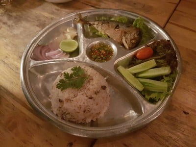 ร้านเล็กๆ น่านั่ง มีดนตรีสดตอนสองทุ่มครึ่ง อาหารไม่แพง รสชาดดี มาก่อน 6 โมงเย็นลด 20% มีโซนนอกกับแอร์ ส่วนใหญ่คนนั่งในฝั่งแอร์มากกว่าพอดีอากาศร้อนและฝุ่นกรุงเทพกำลังเป็นประเด็น ถ้าอากาศดีและเย็นๆคงนั่งด้านนอกกันเยอะดูเพิ่มเติม