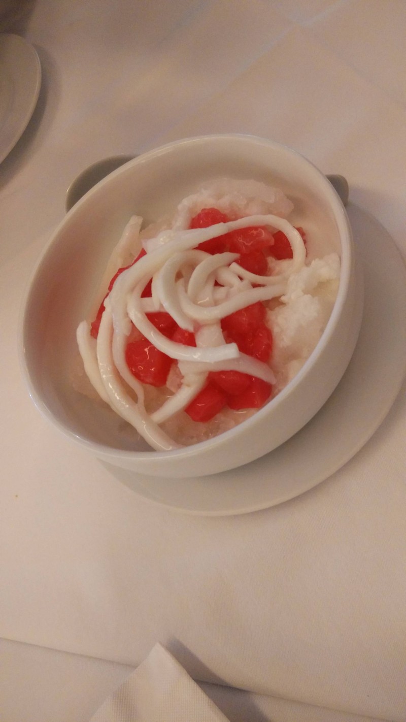 วันนี้ทานมื้อหลักกันมาแล้ว หาที่นั่งคุยเลยมาแวะทานขนมที่ร้านนี้ เมนูที่สั่งมี - ทับทิมกรอบ : เป็นเมนูติดดาวของที่นี่ เพื่อนรีเควส ชิมแล้วก็อร่อยจริงๆ รสชาติไม่หวานมาก กลมกล่อม - Banoffee crepe cake : อันนี้ก็ติดดาว เลยลองสั่งมา อร่อยเช่นกัน ช็อคโกแลตรสเข้มข้น ไม่หวานจัดเข้ากับรสกล้วยและครีม แปบเดียวหมดชิ้นดูเพิ่มเติม