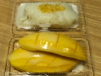 ข้าวเหนียวมะม่วงแม่อุไร เส้นถนนบางแค ข้าวเหนียวมูนของเจ้านี้จะนุ่ม และมันกะทิเยอะ แต่ไม่ค่อยหอมเท่าไหร่ มะม่วงน้ำดอกไม้ หอมอร่อย ไม่สุกเกินไปครับ ได้มาทั้งลูก ทางร้านไม่ได้หั่นมาเป็นชิ้น แค่ผ่าให้เป็นรอยเฉยๆซึ่งลำบากเวลาใช้ช้อนตัด น้ำกะทิข้นๆ มีรสเค็มนิดๆ ทานรวมกันช่วยเพิ่มรสชาติได้ดี ให้ถั่วเขียวซีก หรือถั่วเหลืองซีก มา 3ถุงเลยดูเพิ่มเติม