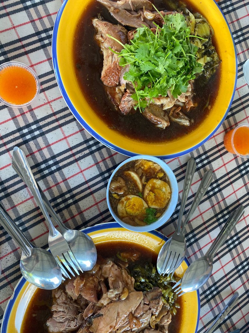 ขาหมูภูเก็ต สูตรของที่นี่จะมีทั้งความนุ่ม มีทั้ง texture หนึบๆ เนื้อเป็นเนื้อ หนังเป็นหนัง ไม่เละ และไม่เลี่ยน เพราะป้าแดง เจ้าของร้านสุดใจดีแอบกระซิบบอกมาว่าป้าจะคอยตักน้ำมันและฟองที่ลอยหน้าตอนตุ๋นออกให้หมด ทำให้น้ำราดขาหมูเข้มข้นแต่แทบจะไม่มีน้ำมันลอยเลยดูเพิ่มเติม