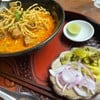 น้านอาหารเหนือ ในบ้านหลังเล็กๆ ตกแต่งได้น่ารักดี •ขนมจีนน้ำเงี้ยว กระดูกอ่อน เสิร์ฟจานใหญ่อร่อยใช้ได้ •ข้าวซอย อร่อยใช้ได้ •เบนโตะน้ำพริกหนุ่ม เซ็ทน้ำพริกหนุ่ม เสิร์ฟพร้อมไส้อั่ว หมูยอ ผัดต้ม กากหมู และข้าวเหนียว กิน 2-3 คนกำลังดี น้ำพริกอร่อย ไส้อั่วทำจืดไปนิด กากหมูออกเค็ม เอามาจิ้มน้ำพริกอร่อยมากๆ ผัดต้มชอบฟักทองและมันเทศ หวานธรรมชาติเลย ส่วนที่เข้ากันน้อยสุดคงเป็นหมูยอ ที่ดูธรรมดา รวมๆ อร...อ่านต่อ
