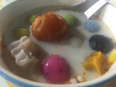 ร้านนี้จะเป็นร้านของหวานที่ชอบมาทานหลังจากอิ่มจากของคาวเสร็จ เพราะชอบและติดใจกับบัวลอยร้านนี้จริงๆค่ะ บัวลอยของร้านนี้จะไม่เหมือนใคร เป็นบัวลอยใหญ่ๆ สีสันสวยงาม (ใช้สีที่มาจากธรรมชาติด้วย) น่าทานมากๆ สอดไส้เผือก แห้ว ถั่วเหลือง น้ำกะทิหอมหวานกำลังดี ราคาไม่แพง ถ้าใส่ไข่เค็มถ้วยละ 35 บาท ธรรมดา 25 บาท ทางร้านยังมีพวกน้ำแข็งไส ทับทิมกรอบ ลูกตาลลอยแก้ว ฯลฯ มีน้ำดื่มบริการฟรีด้วยค่ะดูเพิ่มเติม