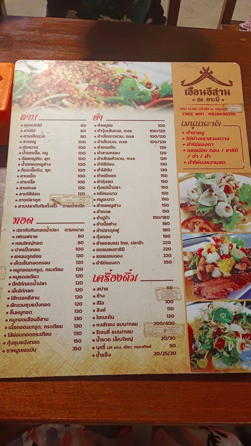 50% ของรีวิวบอกว่าร้านนี้เหมาะกับ ประหยัด!ร้านอีสานพื้นเมือง บุกภาคใต้ ร้านใหญ่ริมถนน ใจกบางเมืองกระบี่ ส้มตำ ตำข้าวโพด คอหมูย่าง ไส้ย่าง ไก่ย่างเขาสวนกวาง ไปจนถึงกุ้งแช่น้ำปลา และส้มตำ ขาหมูเยอรมัน อาหารหลากหลายมาก อร่อยทุกอย่าง ร้านสะอาด อาหารดูสะอาดสะอ้านดี บริการดีมาก พนักงานเยอะ บริการรวดเร็ว มีดนตรีสด (น่าจะบางคืน) ร้านใหญ่ โต๊ะวางห่างกัน บรรยากาศดี โล่งสบาย ไม่เบียดเสียด ราคาน่าคบหา ส้มตำเริ่มต้น 50 บาท อาหารจานเดียวเริ่มต...อ่านต่อ