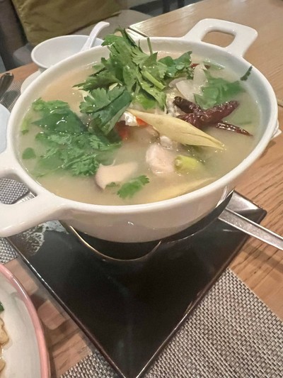 ร้านอาหารไทยในโซนเดียวกับสปา บรรยากาศง่ายๆสไตล์เหมือนทานในบ้าน พนักงานเหมือนเป็นคนเก่าแก่อยู่ในร้านนี้มานาน อารมณ์ดูแลกันเองอย่างง่ายๆ เมนูอาหารไทยร้านนี้มาเต็มพร้อมรูปภาพ มีครบเมนู ยำ ต้ม แกง ทอด รวมไปถึงของหวาน ทั้งสามเมนูที่ทานอร่อยดี ยำวุ้นเส้นกุ้งปลาหมึก ต้มยำปลากะพง ปูผัดต้นหอม น้ำส้มคั้นสด อร่อยทุกอย่าง เสียดาย เสียงดังไปหน่อยจากโต๊ะข้างๆ บรรยากาศเลยลดไปสักนิดดูเพิ่มเติม