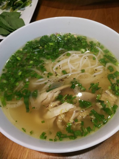 ร้านนี้เห็นมีเกือบทุกหัวมุมถนนเลยค่ะ เราเดินมาทานร้านที่ใกล้ๆโรงแรมเรา หน้าร้านสังเกตง่ายเป็นรูปหน้าผู้ชายใส่แว่น ป้ายสีเหลืองๆดำๆ ในร้านแอร์เย็นดี พนง.บริการดี เมนูมีไม่เยอะก็จะเป็นพวกเฝอเนื้อหรือเฝอไก่ ที่นี่ไม่มีหมูค่ะ แต่ถ้าจะกินเนื้อหมูก็ต้องสั่งเป็นเส้นผัดแบบเรา ปริมาณอาหารที่นี่ให้เยอะค่ะ ชามใหญ่ทีเดียว สำหรับรสชาติ เฝอนั้นน้ำซุปจืดๆเราก็ปรุงด้วยการใส่พริกเผา ก็โอเคขึ้น ทานไปทานมาก็...อ่านต่อ