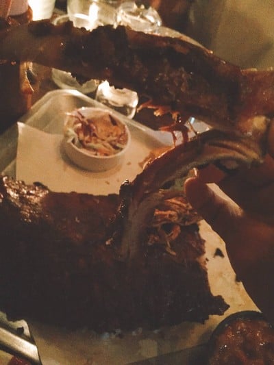 ร้านนี้เป็นร้านเล็กๆ อยู่ริมถนนสุรวงศ์ มีสองชั้น ชั้นบนรับได้สองโต๊ะ เสิร์ฟอาหารสไตล์อเมริกัน เช่น pork ribs, pulled pork, buffalo wings เครื่องดื่ม ค็อกเทล เบียร์ ไวน์ Cider ลูกค้าเต็มร้านตลอด หากจะมาทานอาหาร แนะนำให้จอง อาหารที่สั่งวันนี้สำหรับสี่คน 1. Pork ribs (full rack) ราคาประมาณ 825 บาท เนื้อนุ่มๆร่อนจากกระดูก ออกหวานๆ หอมๆ เสิร์ฟคู่กับโคสลอว์ baked bean และ corn bread ส่วนตัวแล้วรู้...อ่านต่อ