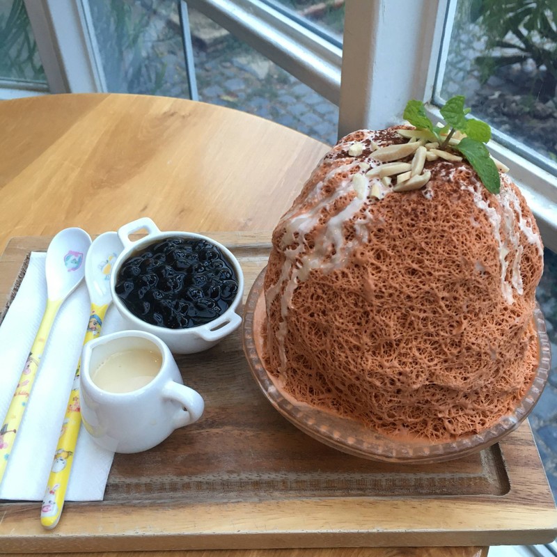เป็นคาเฟ่เล็กๆที่อยู่ตรงข้ามกับมอเกษตร กำแพงแสน มีคนแวะเวียนมาถ่ายรูปอยู่เรื่อยๆ เพราะตกแต่งสวยงาม มีโรงกระบองเพชรเล็กๆน่ารัก ถ่ายรูปได้หลายมุม แต่ตอนไปคนน้อย ทางร้านไม่ได้เปิดแอร์ นั่งกินไปร้อนไปเลยทีเดียว 🍧🧋บิงซูชาไทย เนื้อบองซูนุ่มละมุนมาก รสชาติก็เข้มข้น มีไข่มุกสำหรับสาวกไข่มุกอีกด้วย ดีสุดๆ แล้วถ้วยใหญ่มากด้วย กินกันสองคนก็อิ่มเกินไปหน่อย สักสามคนกำลังดีดูเพิ่มเติม
