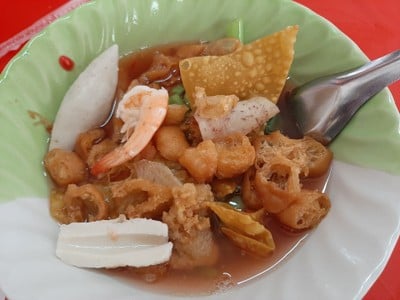 ร้านเย็นตาโฟ เครื่องกรอบที่ให้เครื่องเยอะมาก เป็นเครื่องเย็นตาโฟที่เอาไปทอดกรอบ ถ้าสั่งแบบต้มยำทานร้านยำได้กลมกล่อมมาก ไม่ต้องปรุงเพิ่ม (เว้นแต่เป็นคนชอบรสจัด) อร่อยให้เยอะแถมราคาถูก ต้องไปตำดูเพิ่มเติม