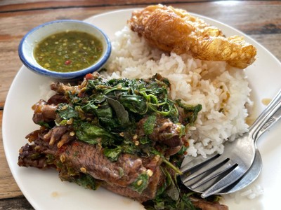 🚩 ก๋วยเตี๋ยวเป็ดคุณติ้ก [บางละมุง] 🦆 ขากลับจากพัทยาก็แวะหาอะไรทานง่าย ๆ ก่อนกลับเข้ากรุงเทพ ขับย้อนกลับมาทางบางละมุง เพื่อมาทานร้านก๋วยเตี๋ยวเป็ด ในซอยบางละมุง 2 เคยมาหลายรอบแล้ว ไม่ร้านปิดบ้าง ก็ของหมด รอบนี้เลยตั้งใจมาถึงร้านช่วง 10 โมงเลย ชื่อร้านก๋วยเตี๋ยวเป็ด แต่เมนูที่เด็ดคือกะเพรา กะเพราเป็ดตุ๋นชิ้นใหญ่ น่องสะโพกบ้าง ช่วงเนื้อติดซี่โครงบ้าง นำมาผัดกะเพราเผ็ดร้าน ผมใส่ใบกะเพราแน่นล้น...อ่านต่อ