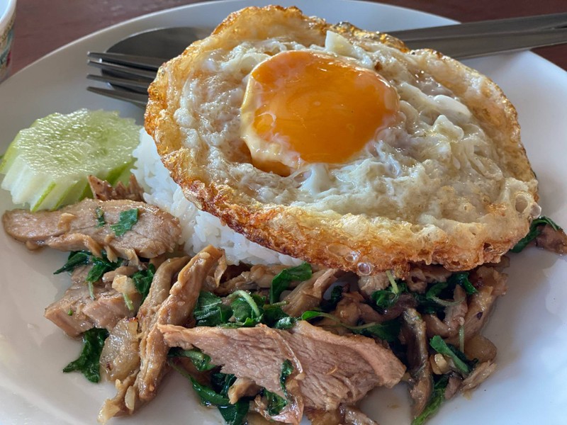 ร้านธรรมดาๆที่มีที่จอดรถเมนูให้เลือกก้เยอะอยู่ ผมหิวๆเลยแวะมาทาน ผมสั่งเมนูกะเพราเป็ดราดข้าว+ไข่ดาว ราคา 45 บาท ถามว่าโอเคไหม ผมว่าโอเคอยู่นะ ให้พอดีราคา รสชาติไม่โดดเด่น หิวๆก้ทานได้รอไม่นาน คุณลุงทำดีดูเพิ่มเติม