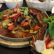 ร้านเกาหลีที่กลับมาเปิดใหม่หลังปิดปรับปรุง ร้านใหม่ดูไฉไลกว่าเดิมเยอะ แต่เมนูยังเหมือนเดิม วันนี้ทานไก่ทอด กับแจยุกบกอึมกะทะร้อน (แปลว่าอะไรไม่รู้ เมนูร้านนี้ไม่มีคำอธิบายนะครับว่าอาหารจานนั้นประกอบด้วยอะไรบ้าง แต่ถามพนักงานได้) รสชาติ: อร่อยดีครับไก่ทอดแทบไม่มีน้ำมันเลย เพราะเอาน้ำมันมาใส่ในกระทะร้อนแทน (ล้อเล่นครับ) หมูกระทะร้อนนี้ก็ใช้ได้ครับ กินแกล้มกับผักชนิดเติมไม่อั้น อร่อยทีเดียว สรุป...อ่านต่อ