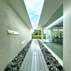 Cafe minimal ที่ซ่อนตัวอยู่ในโรงแรม เน้นสีขาว โอบล้อมด้วยกระจก หินเทา และต้นไม้เขียว กาแฟราคาเป็นมิตรที่รสชาติเกินคุ้ม