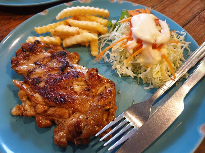 33% ของรีวิวบอกว่าร้านนี้เหมาะกับ จานด่วนร้านสเต๊กข้างทางราคาเบาๆที่รสชาติไม่ธรรมดา อยู่เลยสี่แยกบ้านคลองมาเล็กน้อยจากในเมืองพิษณุโลก มีโต๊ะนั่งไม่เยอะ บรรยากาศบ้านๆ กันเอง อาหารมีจานเดียวอย่างสเต๊ก สลัด สปาเก็ตตี้และข้าวผัดต่างๆ ราคาเริ่มต้นที่ 29 ฿ สเต๊กเริ่มที่ 39฿ ราคาไม่เกิน 79฿ กำลังจะเปิดบริการ delivery โดย Food panda หรือ Grab เร็วๆนี้ วันนี้ลองสั่งสเต๊กไก่พริกไทยดำ(39฿)กลับบ้าน ปริมาณเหมาะสมกับราคาและรสชาติดีเลยค่ะ มีเฟรนช์ฟร...อ่านต่อ