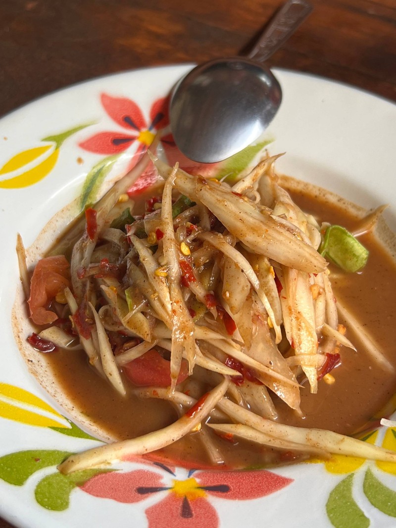 ร้านหมี่โคราชร้านดั้งเดิม แนะนำให้มาก่อนเที่ยง ขนาดมาก่อนเที่ยงยังนานเลยเกือบชั่วโมง ยังดีที่มีส้มตำเลยส่ังมารองท้อง ส้มตำหมูยอปลาร้าอร่อยมาก หมูยอทางร้านอร่อยจริงๆ แต่เผ็ดนะ ใครไม่กินเผ็ดต้องบอก ตำโคราชก็รสชาติใช้ได้เลย หมี่คั่วทางร้านมีความเผ็ดให้เลือก เลยลองสั่งมา3แบบ อนุบาล ไม่เผ็ด ประถม เผ็ดกลาง เริ่มเผ็ด มัธยม เผ็ดมาก มีอีกแบบแต่เผ็ดไม่ไหวดูเพิ่มเติม