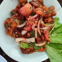 ร้านนีตั้งอยุแถวศาลากลาง ตรง ถนนเล็กๆที่เชื่อมมาปูกะเอ ร้านปิดทุกวันจันทร์ เมนูร้านนี้เน้นอาหารทอด รสชาติออกเปรี้ยวหวาน ถ้าไม่ทานหวานสามารถบอกแม่ค้าได้ เมนูส้มตำทอด เมนูนี้เปนsignature ของร้านนี้เลย ส้มตำกรอบ รสชาติเปรี้ยวหวานอร่อยมาก เมนูนี้ให้. A เมนูตำปูกรอบ เป็นเหมือนส้มตำทอด รสชาติดีเหมือนกัน ให้ A ยำกุ้งทอดกรอบ น้ำยำค่อนข้างเปรี้ยวแต่อร่อยครับ ให้ Bดูเพิ่มเติม