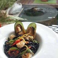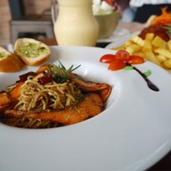 เป็นคาเฟ่ติดถนนขนาดใหญ่อยู่ มีบ่อปลาคาร์ฟให้ดู นั่งชิลล์ๆได้อยู่นะ มีทั้งอาหารและขนมให้เลือกทานเลยตามชอบจ้า อาหารจะเน้นพวก พาสต้า •สปาเก็ตตี้แซลมอน -เส้นสปาเกตตีระดับพอดี ไม่แข็งไม่นิ่มไปได้อยู่ ผัดรสชาติเข้มมันๆ มีพริกแห้งกระเทียม แซลมอนสุกพอได้ เข้ากันดี จนมปีงกระเทียมที่เสิร์ฟมาทานเข้ากัน เอาไป 3 จ้าดูเพิ่มเติม