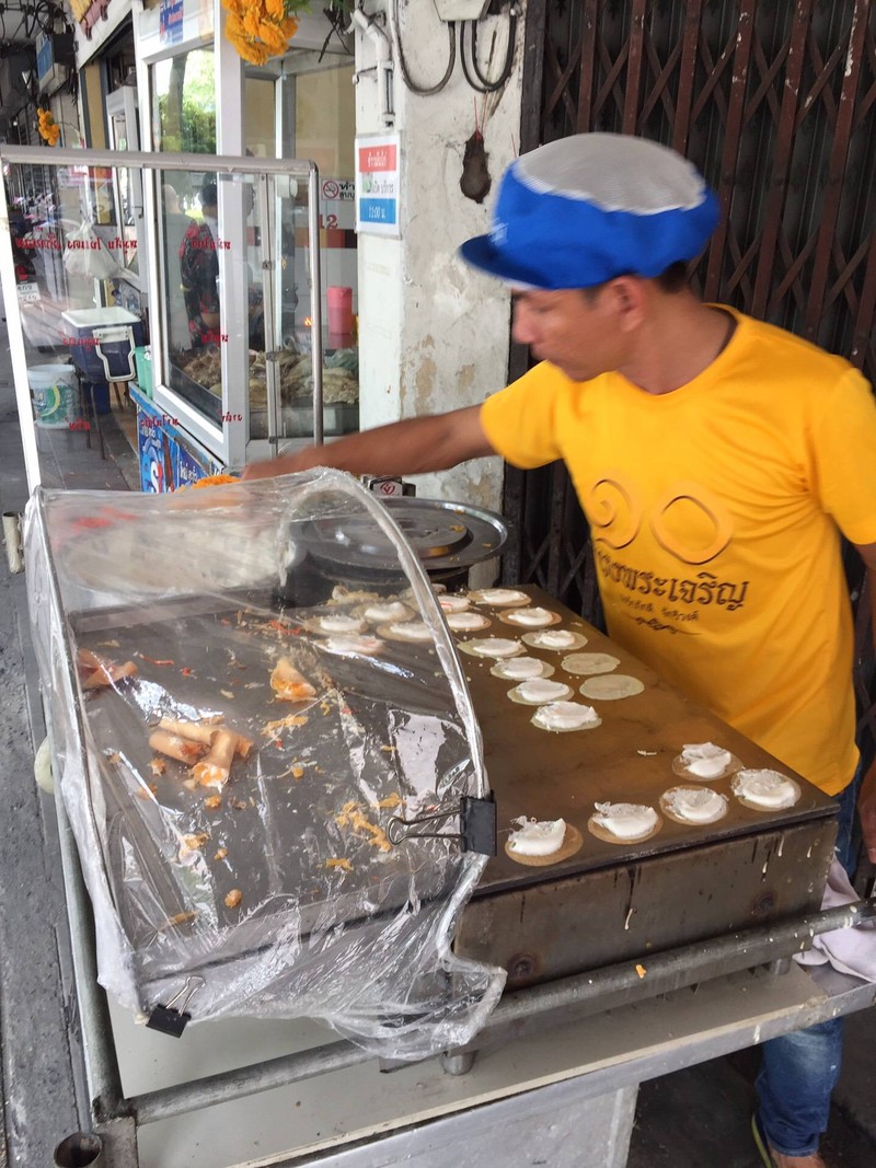 ร้านขนมเบื้อง ร้านนี้อยู่หน้าร้านสมบูรณ์ไทย หน้าปากซอยลาดพร้าว 12 หาได้ไม่ยาก ร้านนี้อยู่ริมฟุตบาทเลย ก่อนกินร้านสมบูรณ์ไทย ต้องแวะสั่งก่อนเลย เพราะว่าใช่เวลาทำหน่อย ทำแป้งบางมากๆๆ มีสองใส้คือใส้หวานกับใส้เค็ม ขนาดกำลังพอดีคำ ราคา 14 ชิ้น 20 บาท อร่อยดีดูเพิ่มเติม