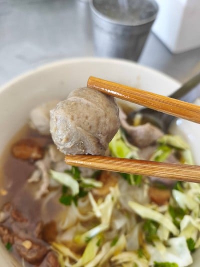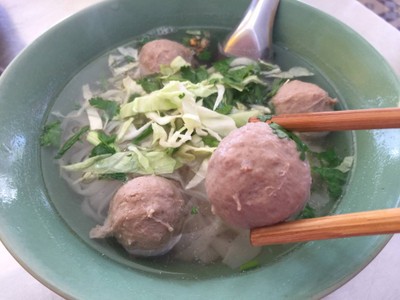 เรามาถึงร้าน9.45 มีลูกค้านั่งรอในร้าน2-3โต๊ะ พอ9.50เจ้าของร้านเดินไปยกเหล็กหน้าร้านขึ้น คนเดินเข้ามาเรื่อยๆ จนพอเรากินเสร็จประมาณ10.10 โต๊ะทุกโต๊ะก็มีคนนั่งหมดแล้ว😆 ขายดีมาก เส้นที่สั่งเป็นเส้นใหญ่ค่ะ ถ้าดูจากขนาดเส้นจะเรียกว่าเส้นกลางก็ได้ เพราะไม่ได้ใหญ่แบบที่เราเคยกินกัน ลวกมาหนึบๆนุ่มๆ อร่อยกำลังดี ส่วนลูกชิ้นเนื้อ ลูกโต เนื้อแน่น ต้องหั่นครึ่งถึงจะเคี้ยวได้พอดี น้ำเปล่าอยู่ในกา ดื่มกับน้...อ่านต่อ