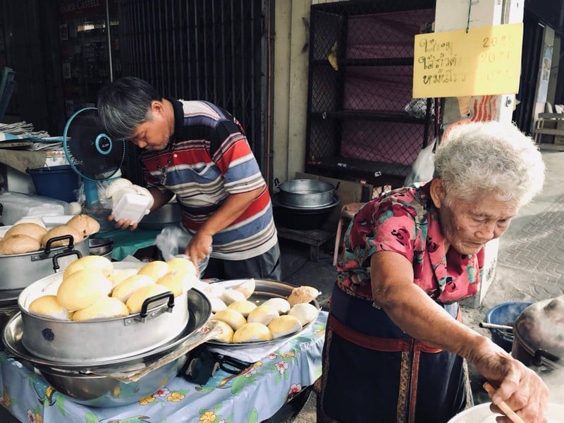 เจ๊ม่วย ซาลาเปาเตาถ่าน [หัวหิน] 🌈 เจ๊ม่วยเป็นคำเรียกนำหน้าชื่อเมื่อในอดีต แต่ตอนนี้จะเรียกเจ๊ม่วยก็ดูจะเขินปากไปหน่อย อาจจะต้องเรียกว่ายายม่วยแทนแล้ว เมื่อแรงยังมี ตายังมองเห็น ยายม่วยก็ยังคงมีแรงขายกันต่อไป ยายม่วยขายซาลาเปาเตาถ่านมานานกว่า 60 ปีแล้ว ยังคงใช้วิธีการทำแบบเดิม ๆ ซาลาเปาไส้หมูสับ ไส้ถั่วดำ เป็น 2 ไส้ที่ยายม่วยทำ แต่ตอนนี้ลูกมือยายม่วยประสบอุบัติเหตุ ไม่สามารถปั้นจีบซาลาเปาได้...อ่านต่อ