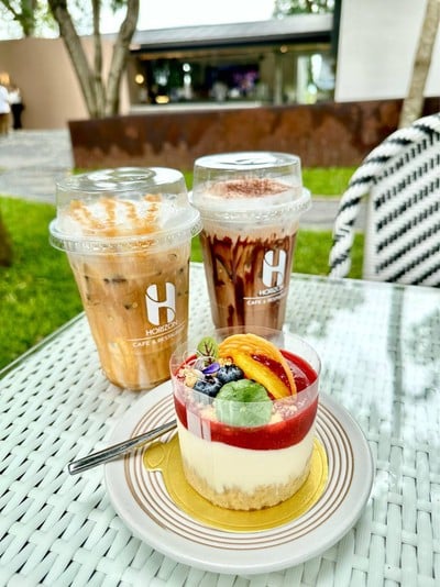 Horizon cafe & restaurant คาเฟ่ท่ามกลางธรรมชาติ ภายในร้านตกแต่งสวยงาม มีdesign ให้ความรู้สึกโปร่งโล่งมีที่นั่งทั้งด้านนอกและด้านใน ทางเข้าร้านมีน้ำพุสวยๆอยู่กลางร้านเป็นมุมถ่ายรูปสวยๆ กาแฟมีให้เลือกเยอะรวมถึงเมล็ดกาแฟคั่ว ทั้งคั่วอ่อน กลาง เข้ม ส่วนกาแฟมีทั้งแบบพื้นฐาน espresso, fusion PAFUME เป็นกาแฟชงแบบ Siphon มีกลิ่นหอมของส้มและcinnamon Piccolo คั่วกลางกาแฟรสชาดนุ่มกำลังดี Fresh tea f...อ่านต่อ