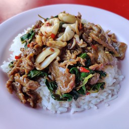 สำหรับใครที่หาร้านอาหารตามสั่งทานง่ายๆ เร็วๆ ภูมิใจนำเสนอเลยร้านนี้ครับ เมนูหลักๆก็เมนูพื้นฐานของร้านตามสั่ง แต่เมนูขึ้นชื่อที่ใครมาก็ต้องสั่งคือผัดกระเพรา มีทั้ง หมู, ไก่, เนื้อ ให้เลือกตามชอบ รสชาด : ถือว่ากลมกล่อมเลยเผ็ดร้อนกำลังดี รสหวานและรสเค็มไม่โดด ที่สำคัญผัดกระเพราที่นี่ไม่ใส่ถั่วฝักยาวนะครับ คงโดนใจหลายๆคน พิกัด : อยู่ปากซอย โชคชัย4 ซอย 55 ...ร้านเป็นรถเข็น มี 4 - 5โต๊ะ ช่วงหัวค่ำค...อ่านต่อ