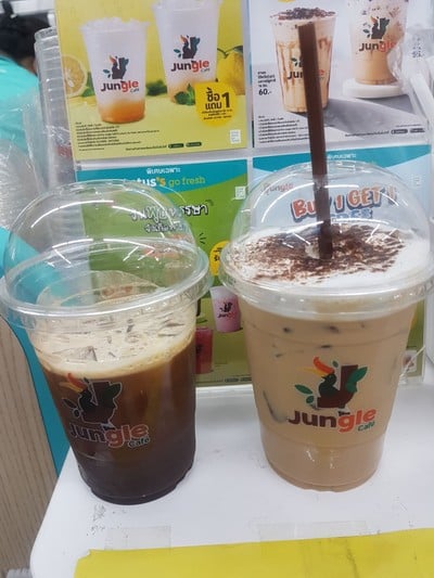 100% ของรีวิวบอกว่าร้านนี้เหมาะกับ เดลิเวอรีJungle cafe เค้าจัดโปรพุธหรรษา เครื่องดื่ม 1 แถม 1 ถึงสิ้นปีนี้ค่ะ เฉพาะสาขาในโลตัสโกเฟรช เครื่องดื่มที่ร่วมโปรต้องเช็คแต่ละสาขาว่ามีอะไรบ้างนะ แต่ละอาทิตย์ก็อาจมีเปลี่ยนแปลง ที่ร่วมรายการตอนนี้มีชามะนาว อูจิใส แดงโซดา นมชมพู อเมริกาโน่เย็น เอสเพรสโซ่เย็น ก่อนหน้านี้คาปูชิโน่เย็นมีร่วมรายการ เราเลยสั่งคู่อเมริกาโน่เย็น ราคาคิดแก้วที่แพงกว่าคือ คาปู 40 บ. กาแฟอร่อยใช้ได้ค่ะดูเพิ่มเติม