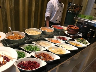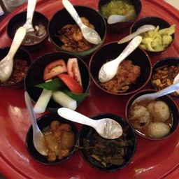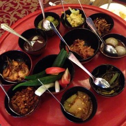เรือน (หรือเรือ?) การะเวก เป็นห้องเลี้ยงรับรองแขกต่างบ้านต่างเมืองหรือคนสำคัญ ตกแต่งสวยงามดีนะคะ มีการแสดงหุ่นเชิดด้วย เห็นไกด์บอกมีรำด้วย แต่กรุ๊ปเรามาถึงเค้าเลิกไปแล้วค่ะ อดดูเลย อาหารเสริฟมาเป็นขันโตก (เห็นเค้าว่าพม่าไม่ใช้ขันโตกแต่เสริฟเพื่อความสวยงามค่ะ) ถ้วยเล็กถ้วยน้อย 10 กว่าอย่าง ก็ถือว่าลองชิมดูค่ะ มีอีก 2 อย่างเสริฟต่างหากคือ -ปลาทอดราดพริก (พริกแห้งสไตล์พม่า) ⭐️⭐️⭐️ กลาง ๆ -แ...อ่านต่อ
