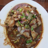 สั่งมา 4 อย่าง กินเพลินมาก เนื้อย่าง มีมันแทรก เหนียวแต่ไม่มาก เคี้ยวสนุก เคี้ยวไปก็มีน้ำมันออกมา หอมเนื้อดีค่ะ ตำไทย-ไข่เค็ม รสชาติดี อร่อยเข้มข้นแบบตำไทย เพิ่มความมันของไข่เค็ม เข้ากัน นัวดี ลาบปลาดุก อร่อยเข้มข้น กินกับข้าวเหนียวเลิศมาก มีหอมเจียวโรยมาด้วย ไม่เหมือนร้านอื่น น้ำตกหมู รสชาติเข้มข้น เปรี้ยวเค็มเผ็ด หมูก็มีความหอมของการย่าง อร่อยมาก แต่หมูติดมันไปนิด รสชาติอาหารวันนี้ถือว่าผ...อ่านต่อ
