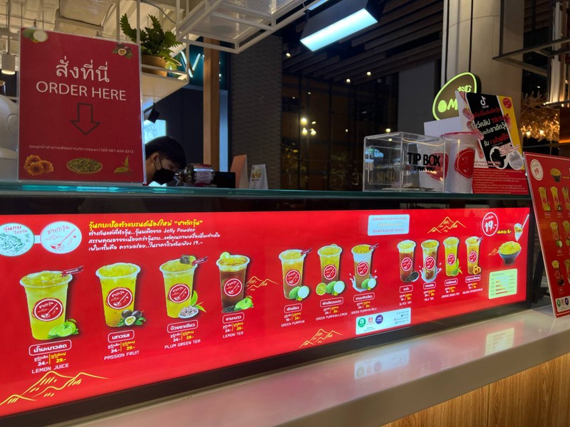 ชาตักวุ้น ตอนแรกเข้าใจว่าเป็นร้านวุ้นกบ แต่ไม่ใช่ เดินเข้าไปดูใกล้ ๆ เค้าบอกเป็นร้านในเครือ แตกต่างกันตรงที่วุ้นของทางร้าน ถ้าเป็นร้านวุ้นกบ วุ้นจะทำจากเมล็ดอ้ายหยู้ซึ่งมีแคลน้อยมีคอลลาเจน ฯลฯ แต่วุ้นของร้านนี้ทำจาก Jelly Powder ไม่มีกากใย , ไม่มีคอลลาเจน ฯลฯ ราคาก็จะแตกต่างกันคือร้านนี้จะราคาถูกกว่า เครื่องดื่มราคาไม่แพงดีเริ่มต้นที่ 19 บ. เมนูมีให้เลือกเยอะ ทั้งน้ำมะนาวสด , ฟักเขียว , ชาดำ ,...อ่านต่อ