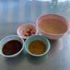 ข้าวมันไก่ที่มี 2 น้ำจิ้ม