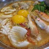 หลบร้อนข้ามฝั่งมากินข้าวเที่ยงถึงที่นี่ พิกัดร้าน อยู่ที่ถนนรามศวร ก่อนถึงสามแยกไทยกล้า ตอนนี้ร้านขยายกว้างขึ้นแล้ว และแอร์เย็นมาก คราวทีแล้วมาชิมกาแฟ คราวนี้มากินข้าวบ้าง สมาชิกแต่ละคนล้วนสั่งข้าวผัด ผมสั่งเป็น มาม่าตกทะเล 129 บาท แล้วเลือกเป็นแบบไข่ดิบ หน้าตาหน้ากินมาก มาม่าต้มยำน้ำข้น ที่ปรุงรสใหม่ ใส่นมและน้ำพริกเผา รสน้ำจะออกหวาน มันและเปรี้ยว มีหมูสับปั้นก้อน ปลาหมึกสด ส่วนกุ้งหัวจะมี...อ่านต่อ