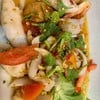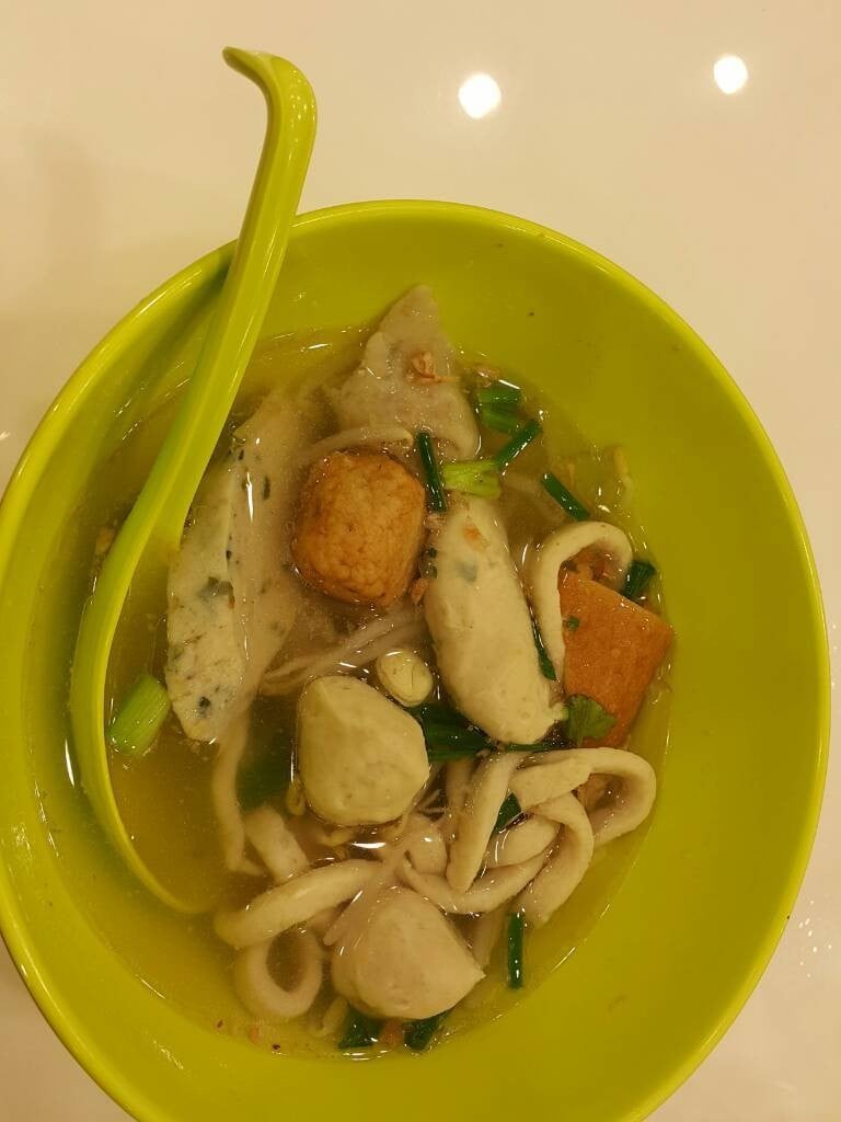 ร้านก๋วยเตี๋ยวลูกชิ้นปลา สีเขียวสะดุดตา ร้านคนไม่เยอะ อาหารได้ไว เหมาะสำหรับคนหิวโซอย่างเรา เย็นตาโฟ สั่งมาเป็นเส้นใหญ่ เส้นเป็นแบบใสเหนียวนุ่มดี ในชามที่ยกมาสะดุดตากับปลาหมึกชิ้นใหญ่ แต่แอบเหนียวไปหน่อยส่วนลูกชิ้นปลาอร่อยดีค่ะ ผักบุ้งลวกมาสุกกำลังดี สีเขียวสวย ลวกจิ้มรวม มีลูกชิ้นมาหลายอย่าง ทั้งลูกชิ้นปลา เกี๋ยวปลา แฮ่กึ้น เนื้อแน่นกลิ่นไม่คาว น้ำจิ้มซีฟู้ดรสจัดดี เต้าหู้ท...อ่านต่อ