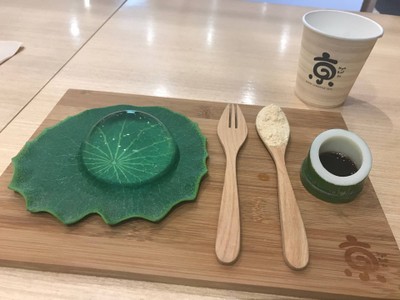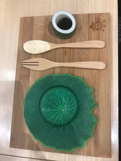 เค้กหยดน้ำมหัศจรรย์ ทำจากน้ำแร่ญี่ปุ่น ไร้แคลอรี่ เสริฟพร้อมผงถั่ว "คินาโกะ" สุดหอม และน้ำเชื่อม "คุโรมิทสึ" ทำจากน้ำตาลทรายแดงจาก เกาะโอกินาว่า