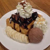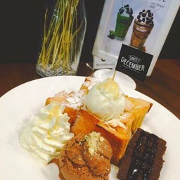 กินของมันแล้วตามหาของหวานของขมล้างคอบ้าง วงในบอกมีร้านที่ต้องการอยู่ใกล้เคียง บรรยากาศดีครับ นั่งสบายกับเสียงเพลงรื่นหู Americano ถามหาได้กาแฟที่ชงแบบต้องการ กาแฟมีกลิ่นหอมอ่อน ๆ ขมนิด ๆ จิบระหว่างของหวาน ถูกใจดีครับ Mango Aloha ข้าวเหนียวนุ่ม ๆ เข้ากันดีกับไอติมมะม่วง หวานเย็นชื่นใจ เห็นเมนูโทสต์ทุเรียนหลังจากสั่งของไปแล้ว วันนี้เลยอดชิมดูเพิ่มเติม