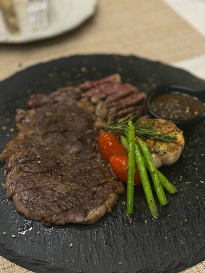 ร้านสเต็กลับๆที่ไม่มีมีแต่สเต็ก เพราะร้านนี้เค้ามีทั้งเนื้อ หมูดำ ปลา ของทานเล่น วันนี้ที่ไปเป็นโอกาสพิเศษ จองไว้ตั้งแต่เดือนที่แล้ว เพราะมีคนแนะนำว่าร้านนี้บรรยากาศเป็นส่วนตัวสุดๆ เพราะทั้งร้านมีอยู่โต๊ะเดียว 😁 เมนูที่สั่ง ซุปผักโขม พายเนื้อ สเต็กเนื้อวากิว สเต็กปลาแซลมอน ขอการันตีเลยว่าทุกเมนูไม่ผิดหวังเลย การบริการก็ดีมากๆ พนักงานเอาใจใส่ สุภาพมากค่ะๆ 👍👍👍👍 ชอบที่สุดคือพายเนื้อ เคยทานที...อ่านต่อ
