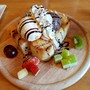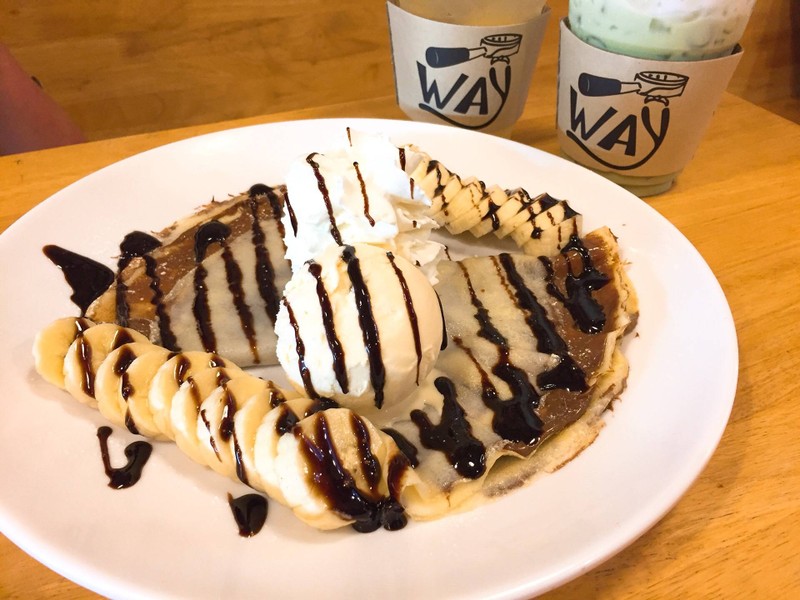 เป็นร้านเล็กๆริมถนนต้นสน อยู่ใกล้มาทางฝั่งวงเวียน ตรงข้ามร้านใหญ่สุกี้กระทะร้อน หน้าร้านเป็นผนังอิฐสีส้ม มีชื่อร้านอยู่ บรรยากาศในร้านเป็นโต๊ะไม้ และมีมุมริมหน้าต่าง เมนูที่สั่งวันนี้คือ เครปนูเทลล่ากล้วย ราคา100บาท คืออร่อยเลยอ่ะ แป้งเครปนุ่ม ทาด้วยนูเทลล่าเข้มข้น ท็อปด้วยไอศกรีมวนิลาและวิปครีม เข้ากันที่สุด แนะนำเลยเมนูนี้ ส่วนน้ำผึ้งมะนาวก็อร่อย กำลังดี ชาเขียวมัชฉะนมก็โอเค เครื่องดื่มราคา45...อ่านต่อ