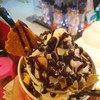 ร้านตั้งอยู่ชั้นใต้ดินห้างเมญ่า เคยมาลองทานรอบนึงแล้วแต่ตอนนั้นจำได้ว่ามีอยู่รสเดียว มารอบนี้มีรสสตอเบอรี่กับรสช็อกโกแลตเพิ่มมาด้วย สั่งรสช็อกโกแลตมาลองทานส่วนตัวว่าอร่อยดีนะมันนัวๆ ถั่วๆดี ส่วนตัวแล้วชอบดูเพิ่มเติม