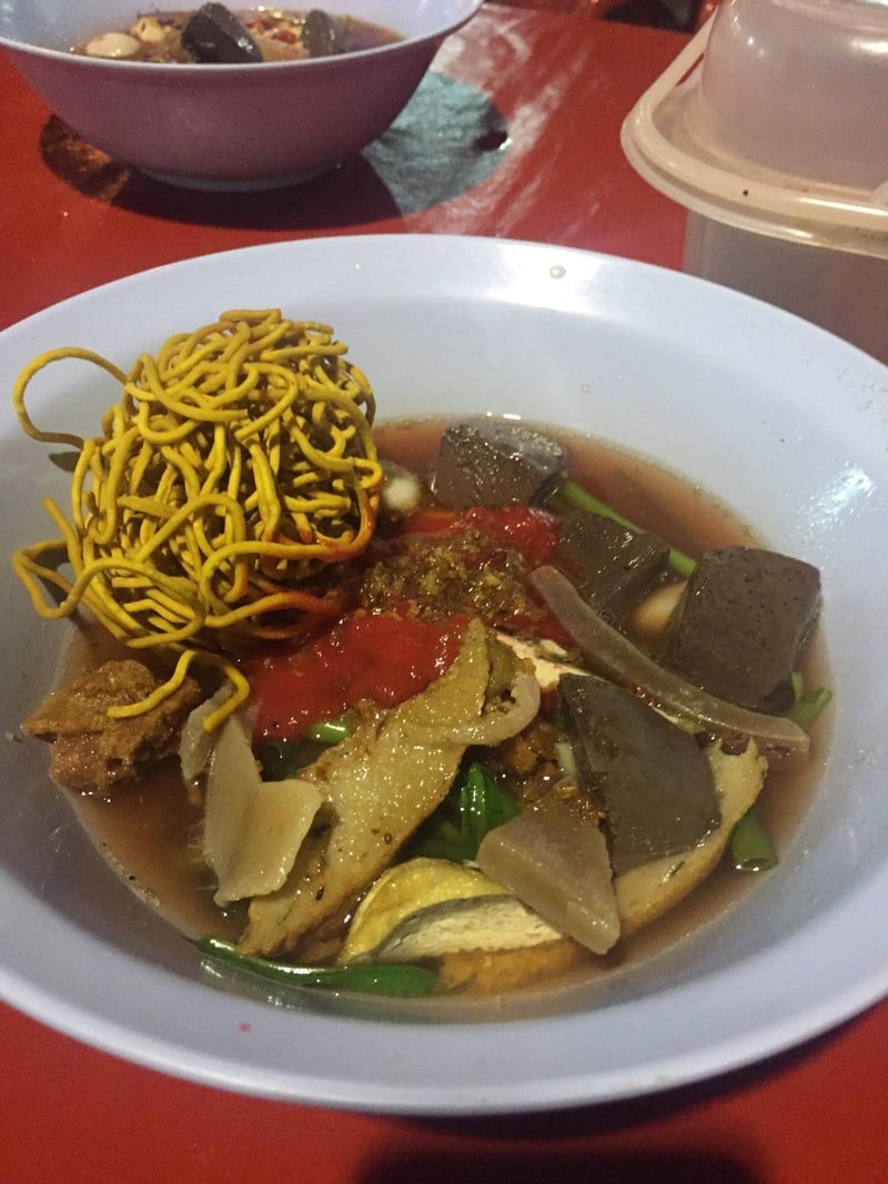 ร้านดัง ณ ประตูชัยแห่งเมืองแพร่ มาตามแผนที่ได้เลย สังเกตุเห็นง่ายเพราะร้านอยู่ตรงหัวมุมเลย ตรงสี่แยกเลย ร้านรถเข็นแต่โต๊ะเยอะคนแน่นมาก ช่วง18.00-19.00ต้องรอคิวหน่อย โต๊ะนั่งแบบแชร์กันหน่อย สั่งอาหารเสร็จ ก็ลุกไปตักน้ำแข็งเองด้านหลังเลย เส้นเล็กเย็นตาโฟ 35฿และ เส้นหมี่เย็นตาโฟ35฿ มาชามใหญ่เลย เครื่องเยอะ เส้นปลาหลายชิ้น มีแป้งทอดกรอบมาแบบจุใจ เคี้ยวได้กรอบๆทุกคำ ซ...อ่านต่อ