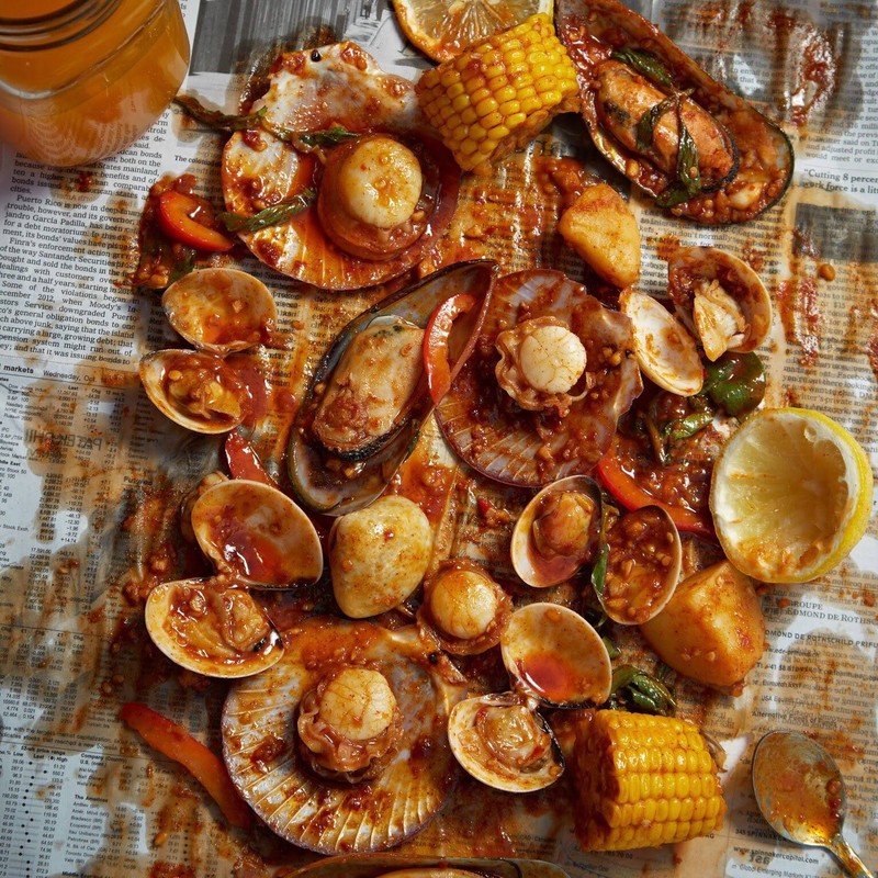 หอยแมลงภู่นิวซีแลนด์, หอยเชลล์, หอยตลับ, มันฝรั่ง, ข้าวโพด