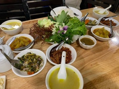 100% ของรีวิวบอกว่าร้านนี้เหมาะกับ เพื่อนฝูงร้านนี้อยู่กลางเมืองตองจี เป็นเมืองหลวงของรัฐฉาน ของประเทศพม่า อยู่ใกล้สถานที่ท่องเที่ยวดังคือ ทะเลสาบอินเล ทะเลสาบที่คนพายเรือด้วยเท้า อาหารพม่าร้านนี้ให้ข้าวฟรี ผักฟรี น้ำพริก เครื่องเคียงต่างๆ ฟรีหมด สั่งแต่กับ ซึ่งก็มีหลายแกง แกงแพะ หมู ไส้หมู ปลา กุ้ง อาหารพม่าของแท้ต้องน้ำมันเยอะ ถ้าใครไม่ OK เรื่องน้ำมัน ก็อาจจะต้องวางมือเรื่องอาหารพม่าไปนะครับ อาหารจานเด็ด: แกงแพะ คะแนนตามหัวข้...อ่านต่อ