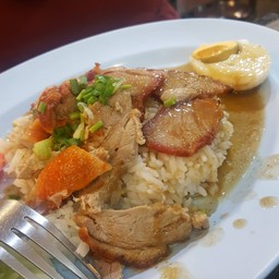 หลังจากไปออกกำลังกายที่พุทธมณฑลช่วงเช้า เลยขับรถมาหาอะไรกินตอนเช้า เจอที่จอดรถตรงหน้าร้านพอดีเลยลองแวะกินดู ร้านจะเป็นร้านขายข้าวหมูแดง หมูกรอบ ข้าวหน้าเป็ด บะหมี่เกี๊ยวต่างๆ ลองสั่งข้าวหมูแดงมา 1 จานกินกับเกี๊ยวน้ำ น้ำราดหมูแดงออกจะหวานไปนิดหนึ่ง ต้องใส่พริกดองกินแกล้ม ส่วนเกี๊ยวน้ำก้อรสชาติมาตรฐานทั่วไป ร้านจะอยู่ตรงข้ามม.มหิดลศาลายา ติดกับร้านง้วน ลูกชิ้นปลาน้ำใสเลยดูเพิ่มเติม