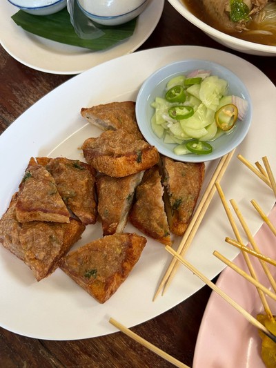 มาร้านนี้เพราะว่าคนต่อคิวเยอะ ผ่านมาถนนเส้นนี้พอดี เห็นร้านนี้คึกคักมากๆ บวกกับ เลยเที่ยงมาแล้วด้วย จึง ต้องเข้ามาลองสักหน่อย ประเดิมด้วยหมูสะเต๊ะก่อนเลยเนื้อหมูนุ่ม น้ำจิ้มรสเข้มข้น ตามมา ด้วยก๋วยเตี๋ยวไก่ตอนเสิร์ฟวางลงมาบนโต๊ะถึงกับตกใจในน่องไก่ ที่มาพร้อมสะโพกขาวอวบ เห็นเป็นสะโพกใหญ่แบบนี้แต่เมื่อใช้ตะเกียบคีบคือเนื้อเปื่อยนุ่มมาก ตรงข้อไก่เคี้ยวเพลินร่อนออกมาจากกระดูก เคี้ยวเอ็นข้อไก่ไ...อ่านต่อ