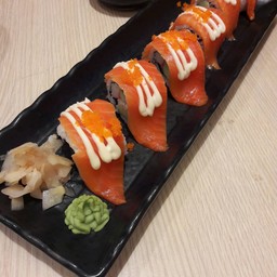 มีส่วนผสมของกุ้ง Salmon Roll